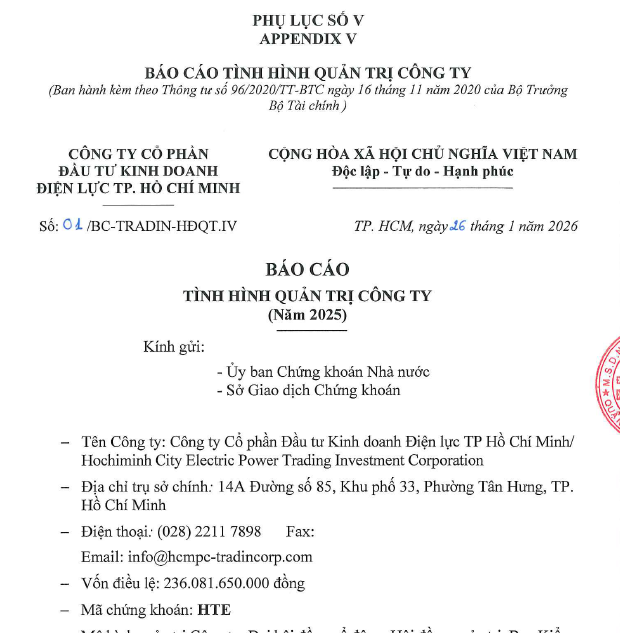 - Báo cáo tình hình quản trị Công ty 2025 Ngày đăng: 30/01/2026